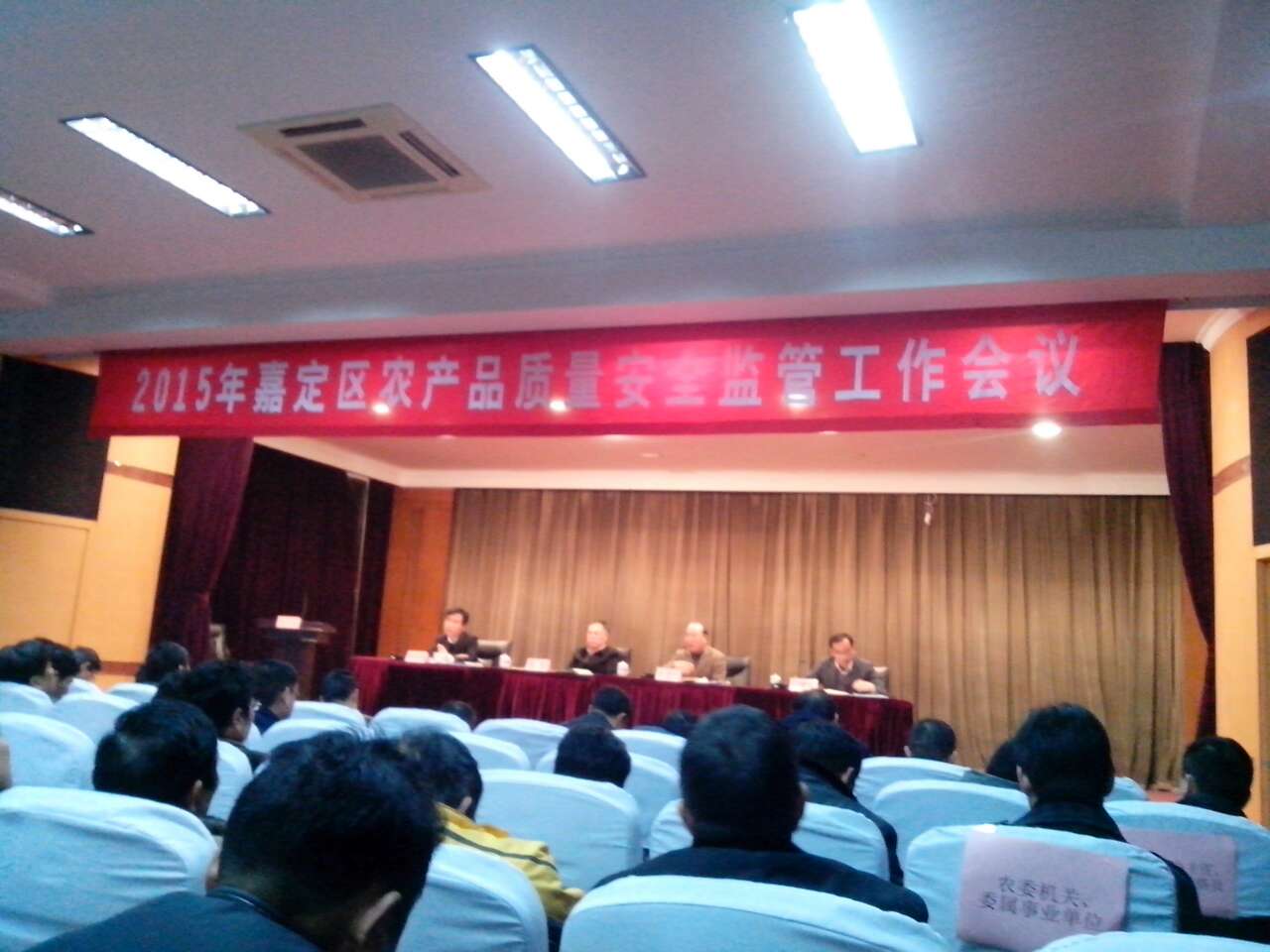 2015年1月23日上午,上海市嘉定區人民政府在嘉定區召開了2015年嘉定區農產品質量安全工作會議。副區長朱建江、市農委副主任殷歐出席會議并作重要講話。區委農辦、區農委主任朱維強部署有關工作。區府辦副主任印耀華主持會議。我司作為企業代表參加了本次會議。