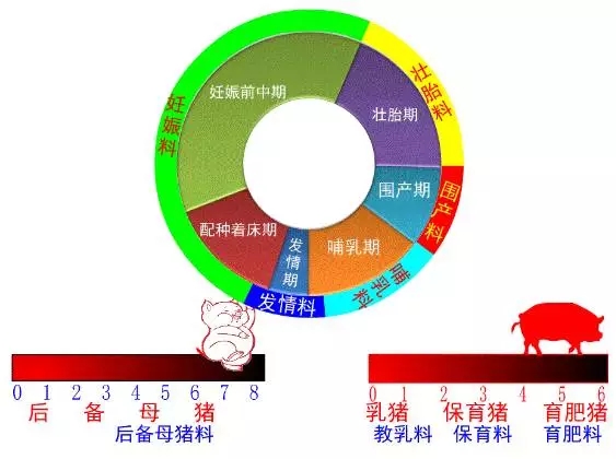 根據母豬繁殖生理、母豬繁殖病理、胎兒生長發育、母仔關系、飼養管理、動物營養、飼料工藝、生產環控等特點,現代雜交瘦肉性母豬必須“階段細分、整體連貫”,即階段精細、精準、專業飼喂;過渡自然、有機、整體優化。