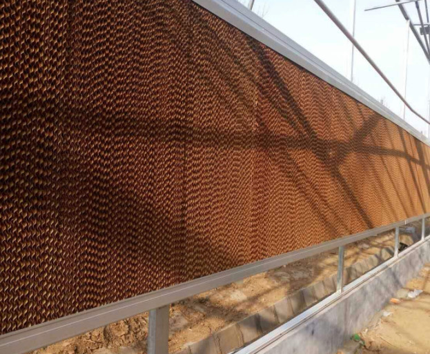 1、縱向通風-濕簾降溫。1萬只的產蛋雞舍可安裝面積為20-30m2的濕簾和4-5臺(其中1-2臺為變頻控制)直徑125cm(功率1.1KW)的風機,舍內形成2.0-3.0m/s的風速,可使雞只感應溫度降低6-8℃,有條件的雞場可采用深井水來冷卻進入雞舍的濕簾外熱空氣,效果更好。
